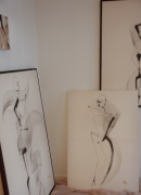 “Ik begin vaak met bepaalde vormen in mijn hoofd, maar zodra ik bezig ben, laat ik het plan los en werk ik volledig vanuit mijn gevoel. Tijdens het proces omarm ik het toeval en de spontaniteit van het moment. Er zit schoonheid in imperfecties, zoals een snelle penseelstreek, vloeiende inkt, asymmetrie, de textuur van materialen, of juist een bepaalde eenvoud.”