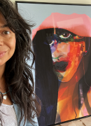 De vrouwen in haar schilderijen verschijnen niet als klassieke portretten, maar als ontmoetingen. Hun blikken en houdingen dragen een stille aanwezigheid die zich richt tot de kijker. Ze vragen geen interpretatie, maar bieden herkenning, een moment van intimiteit waarin het persoonlijke en het universele elkaar raken.